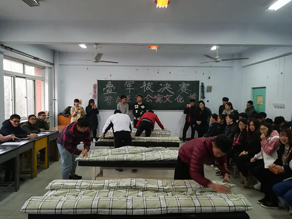 为了培养同学们养成良好的生活习惯,提高学生内务的标准,12月28日,学校在校自管会活动室举行了以“强化内务,提高自身素质”为主题的第十二届公寓文化节叠军被大赛。学生工作处工作人员,各系学管辅导员、校自管相关人员观看比赛。