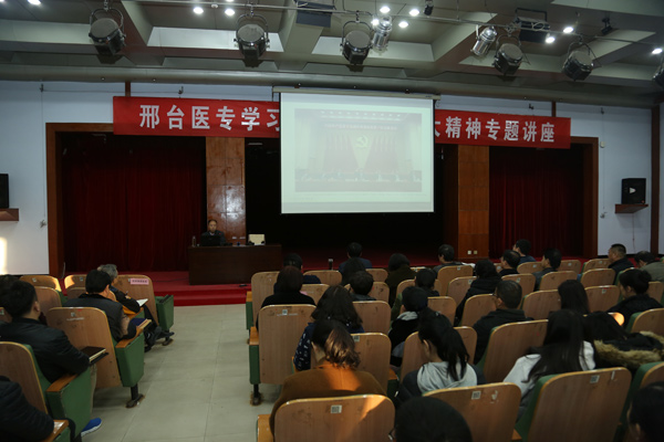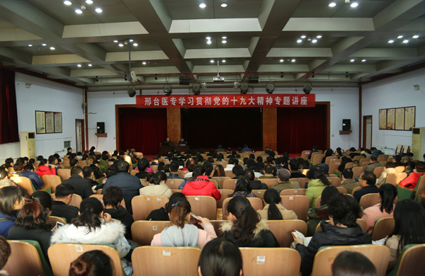 “习近平新时代中国特色社会主义思想是十九大报告的灵魂……”11月23日下午,我校学习贯彻党的十九大精神专题讲座在学术报告厅举行,邢台市委党校翟吉瑞教授应邀为我校党员干部作了题为“新时代,新征程,深入学习贯彻党的十九大精神”的辅导讲座。学校领导、全体党员、行政管理干部、教研室主任、辅导员等300余人到场聆听。学校党委副书记李建广主持讲座。