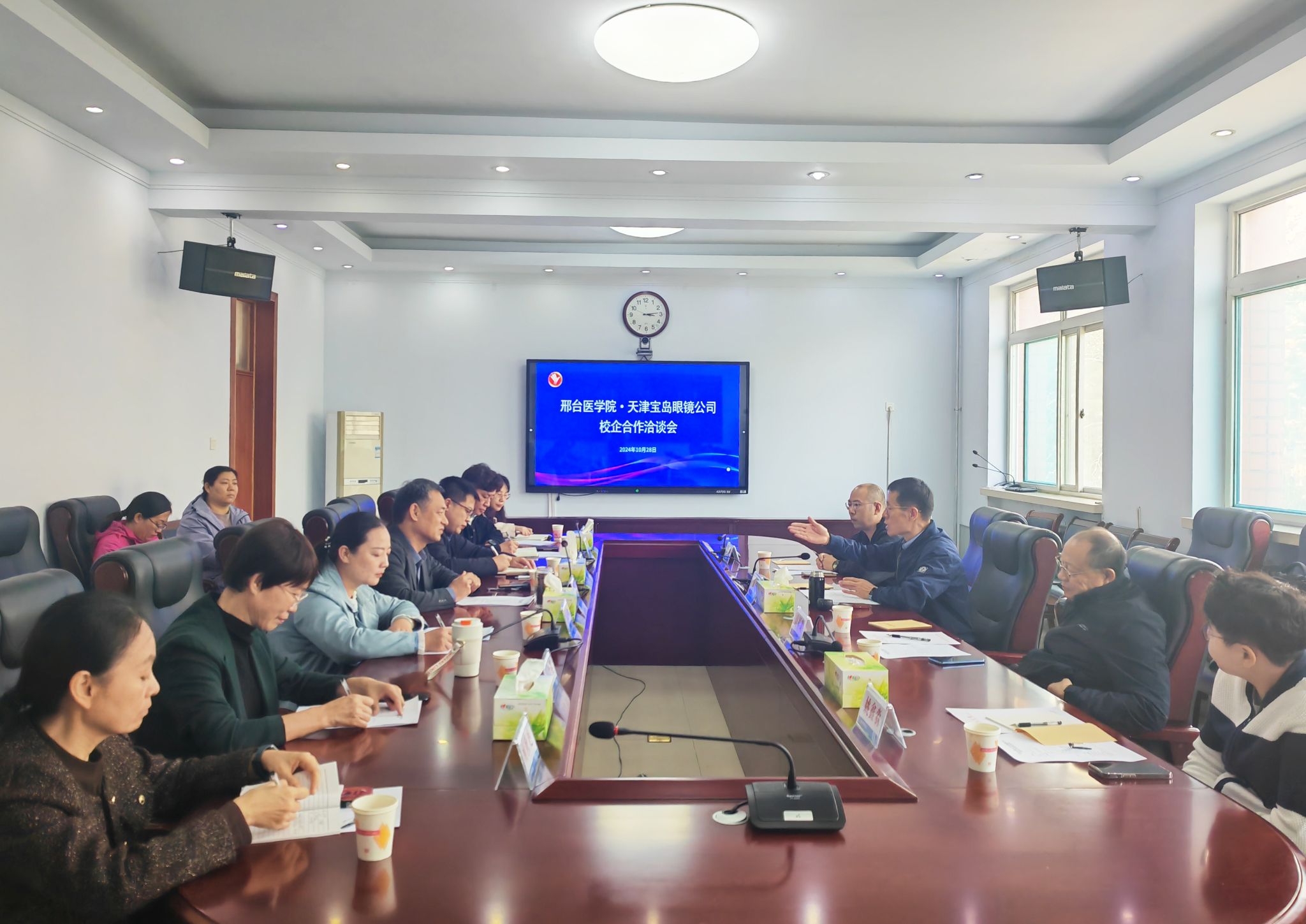 10月28日下午,我校与宝岛眼镜公司校企合作洽谈会在行政楼三层会议室举行。宝岛眼镜天津河北事业部总经理金锋、原天津医科大学眼视光学院教授高祥璐等一行4人,学校党委副书记张志强、临床实践教学部主任陈亚、医疗技术系及眼视光技术专业有关人员参加了洽谈会。会议由医疗技术系党总支书记张晶娜主持。
