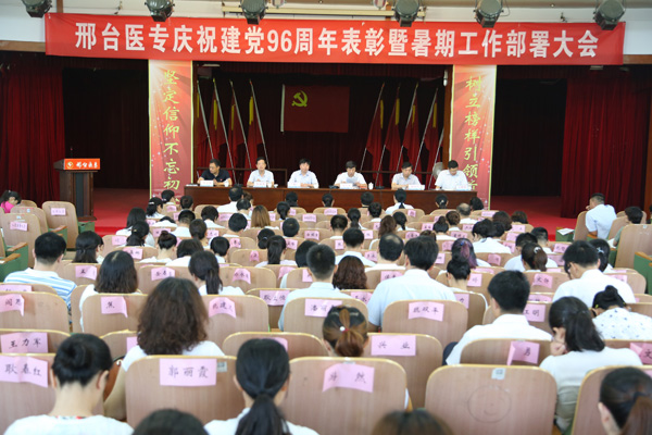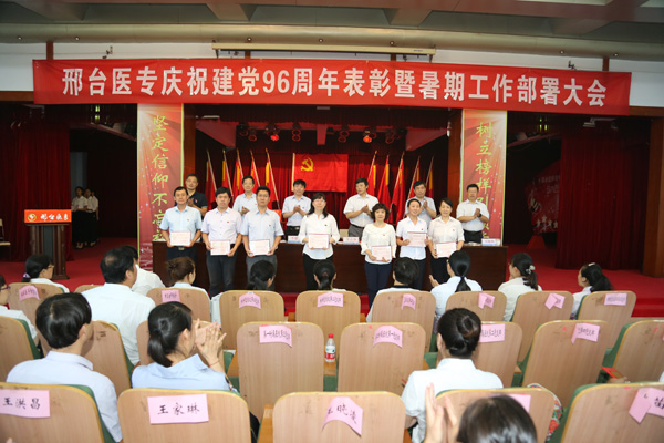 7月7日,我校在学术报告厅举办庆祝建党96周年表彰暨暑期工作部署大会。学校领导、受表彰人员、学校中层干部和全体党员300余人参加,大会由党委副书记李建广主持。