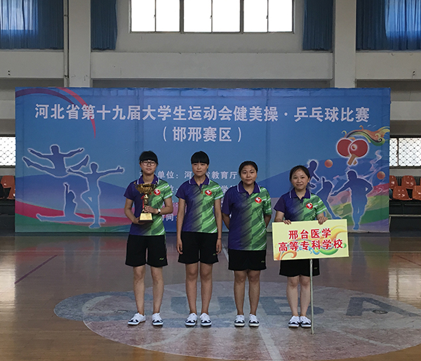6月10日,在学校纪委书记王晓明、体育教学部主任申志娟的带领下,我校师生共14人到河北工程大学参加河北省第十九届大学生运动会(邯邢片区)乒乓球比赛。经过紧张激烈的角逐,我校乒乓球队运动员凭着昂扬的斗志、精湛的技艺,分别取得了乙组男子团体第一名和乙组女子团体第一名的优异成绩,为学校争夺了荣誉。