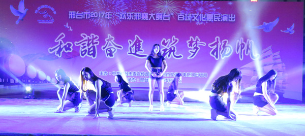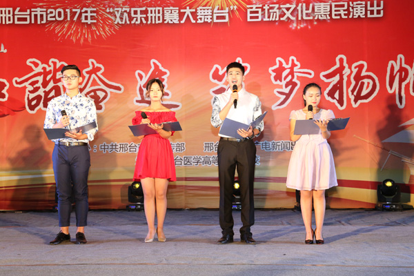 5月26日晚,由中共邢台市委宣传部、邢台市文化广电新闻出版局主办,我校承办的邢台市2017年“欢乐邢襄大舞台”百场文化惠民演出在邢台市图书馆前举行。2000余名市民到场观看。