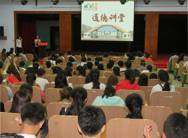 为大力弘扬社会主义核心价值观,充分发挥道德讲堂的育人作用,传播优秀人物的先进事迹和正能量,营造见贤思齐的浓厚氛围,增强师生道德建设的吸引力和感染力,5月22日,我校举办了道德模范进讲堂活动,邀请中国第16批援非医疗队——中国援刚果(金)医疗队队员张瑞琴走进道德讲堂,以亲身经历讲述在援非抗疫第一线的感人事迹。全校各系部200余名师生接受了道德洗礼。