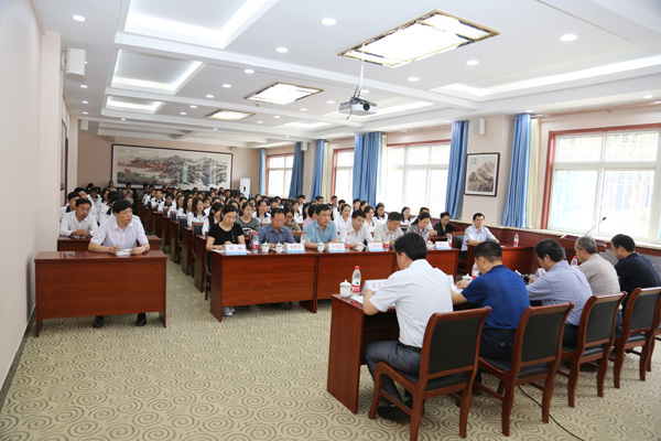 5月11日下午,我校与河北国金药业有限责任公司在学校图书馆一层会议室举行了药学专业现代学徒制校企合作签约暨开班仪式。学校领导李占华、李朝鹏、张志强,河北国金药业有限责任公司董事长、总经理张四岩以及公司工会主席、人力资源部经理李炳佑,质量总监白新涛,总经理助理、办公室主任李风雷,教务处、学生工作处、实习管理处、药学系负责人,药学教研室老师、现代学徒制培训班30名学生及部分学生代表共100余人参加了会议。会议由药学系主任王立普主持。