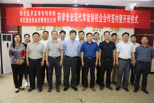据悉,根据《邢台医学高等专科学校与河北国金药业有限责任公司合作成立药学专业现代学徒制班实施方案》,学校与河北国金药业有限责任公司共同制定人才培养方案,确定相应的教学内容和合作形式,改革教学质量评价标准和学生考核办法,将学生工作业绩和师傅评价纳入学生学业评价标准。在人才培养目标的指导下,由企业与学校、教师与师傅共同参与,按照“国金药业用人需求与岗位资格标准”来设置课程,建成“公共课程+基础课程+核心课程+项目课程”为主要特征的适合学徒制的专业课程体系。根据与国金药业商谈,经过企业面试和学校考核,从2016级药学专业中筛选30名学生组建现代学徒制培训班,命名为“药学专业国金药业干部储备班”,按照“三阶段递进式”人才培养模式,学生毕业时同时取得高等职业教育学历证书和满师合格证书。最后根据自愿原则,签订合同,成为河北国金药业有限责任公司的正式员工。