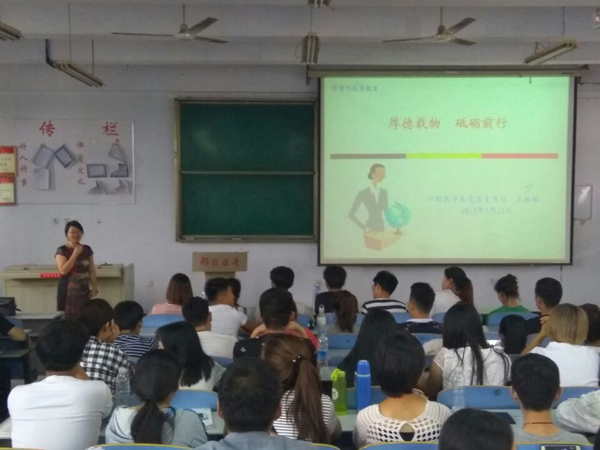 5月15日下午,口腔系在2016级普口1班举办了以“厚德载物, 砥砺前行”为主题的形势政策讲座,口腔系党总支书记王振敏主讲。