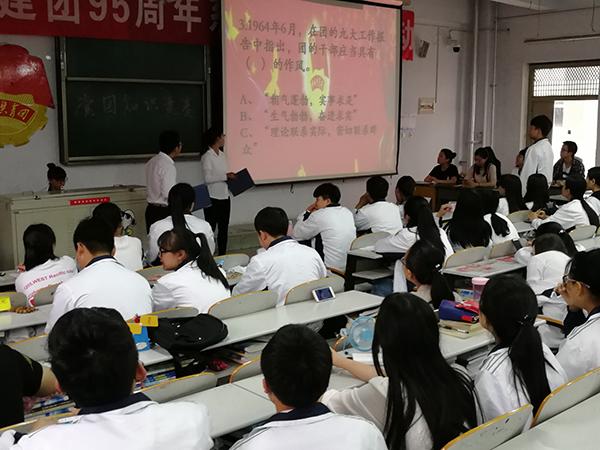 为提高团员思想政治素质以及党性的修养,增强道路自信、理论自信和制度自信,不断坚定中国特色社会主义的理想信念,激发团员青年实现“中国梦”的青春活力,5月10日下午,校团委在2016级普临1班阶梯教室举办庆祝建团95周年系列教育实践活动之“学习总书记讲话,做合格共青团员”党团知识竞赛,校团委副书记卢青、校团委各部部长担任本次竞赛评委,校团委、社联学生干部及各系学生代表共200余人观看了比赛。