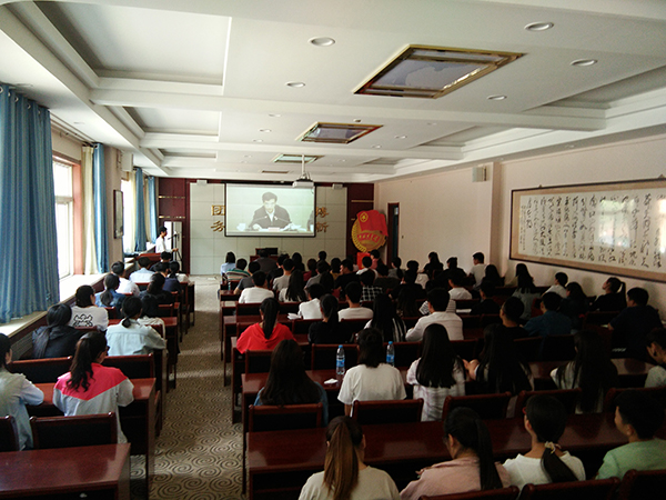 4月28日下午,校团委在图书馆一层会议室组织团干部观看团中央“青年之声”运行一周年暨“网上共青团”建设工作电话会议。校团委书记杜庆岩、副书记卢青,各系团总支书记,团委、社联学生干部,各系团员代表共100余人参加活动。