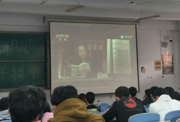 活动得到了学生的广泛支持和好评,首次展映就有数百名学生到现场参与。活动中,中医系崔亚迪老师首先和大家分享了她关于读书的故事,并为同学们朗读了杨绛先生的作品《我们仨》节选。随后,主持人为大家播放了董卿主持的节目《朗读者》中的三个视频:作家刘震云朗读了其获得矛盾文学奖的小说《一句顶一万句》,斯琴高娃朗读了贾平凹先生的散文《写给母亲》,“走心”情侣丁一舟、赖敏带来的女作家三毛的《你是我不及的梦》,其中刘震云的《一句顶一万句》用朴实的叙述语言,塑造出了一个个让读者难忘的人物形象,表现出作者深厚的艺术功底和对于复杂微妙人性世界的精到把握;老艺术家斯琴高娃饱含深情的朗读,唇齿之间充满了对已离世母亲的悲伤和怀念,感动了在场的每一名同学;“走心”情侣赖敏虽然患有遗传性小脑性共济失调,但不屈服命运,在男友丁一舟的帮助下从柳州出发,准备在中国地图上走出一个心形,他们坚强的毅力让在座的每名同学动容。