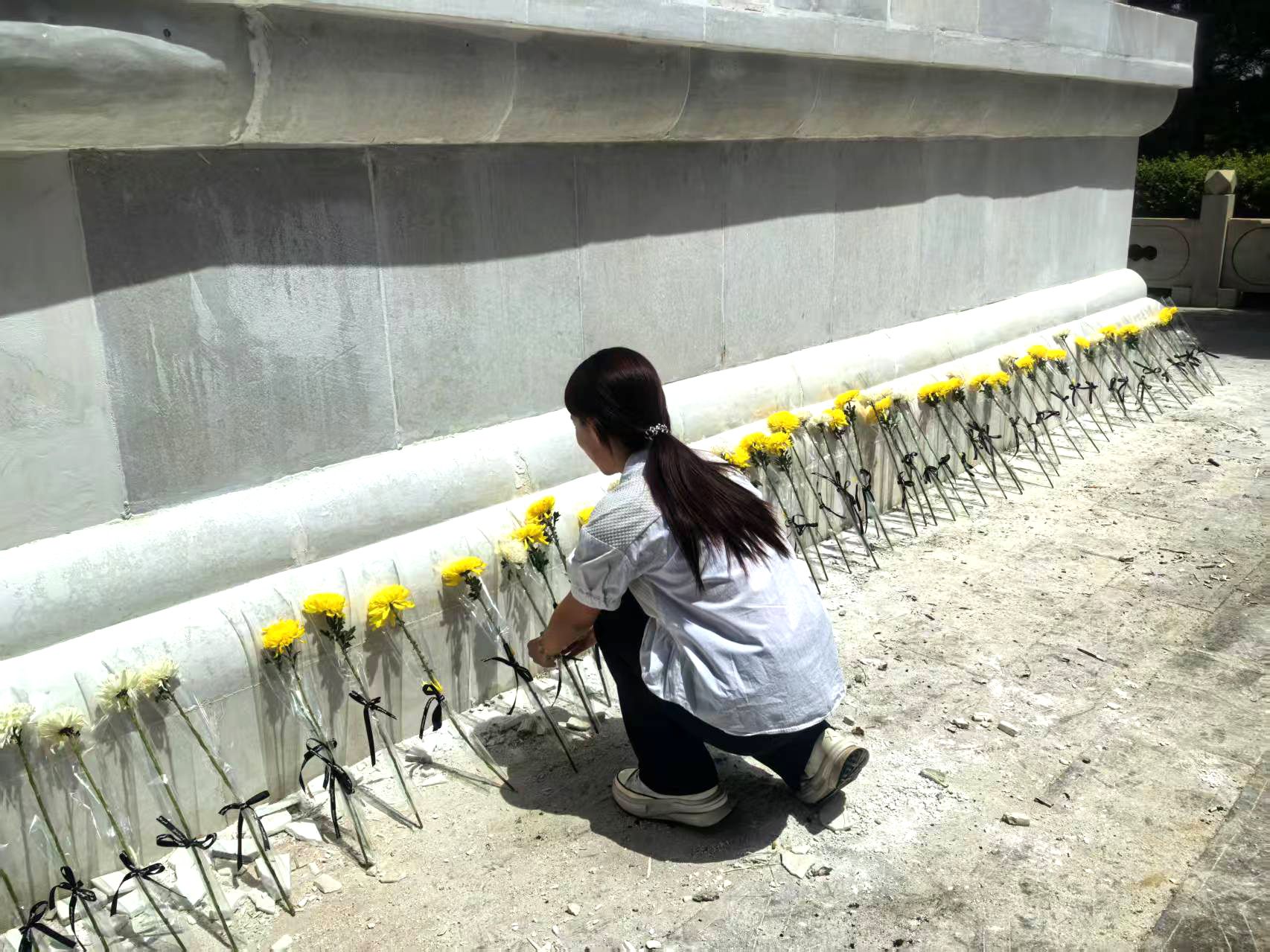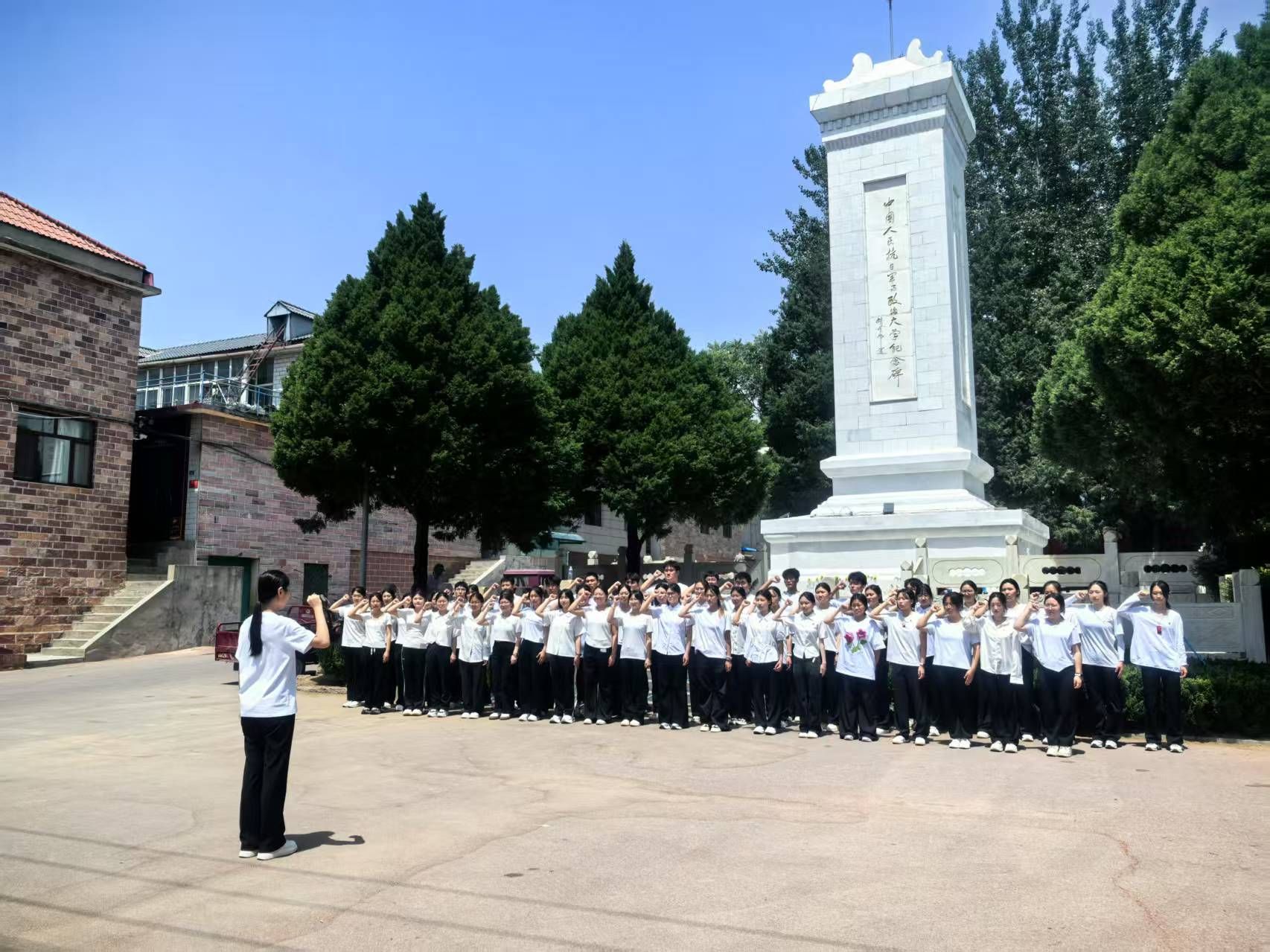 在抗大纪念碑前,同学们整齐列队,手捧鲜花,依次敬献,表达对革命先烈的深切缅怀和崇高敬意;一起重温入团誓词,铿锵有力的誓言在广场上空回荡;深情朗诵《巍巍丰碑映丹心,砥砺前行续华章》,追忆波澜壮阔的红色记忆,奏响“请党放心、强国有我”的时代强音;齐声高唱《我的祖国》,激昂的歌声抒发了对祖国的无限热爱。
