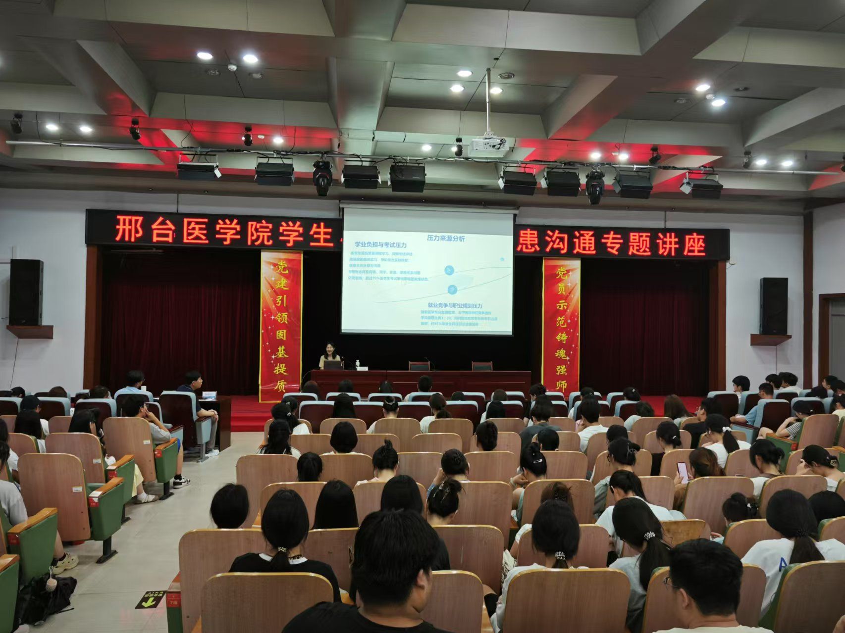 为促进学生心理健康,增强医患沟通能力,近日,学校教务处、临床实践教学部、“一站式”学生社区邀请邢台市第六医院心身疾病科原主任郭会霞、邢台医学院第二附属医院医患办主任李广学分别作了《医学生压力与情绪管理》和《常见医患沟通问题及处理技巧》的专题讲座,临床医学系、中医系、口腔医学系280余名学生代表聆听了讲座。