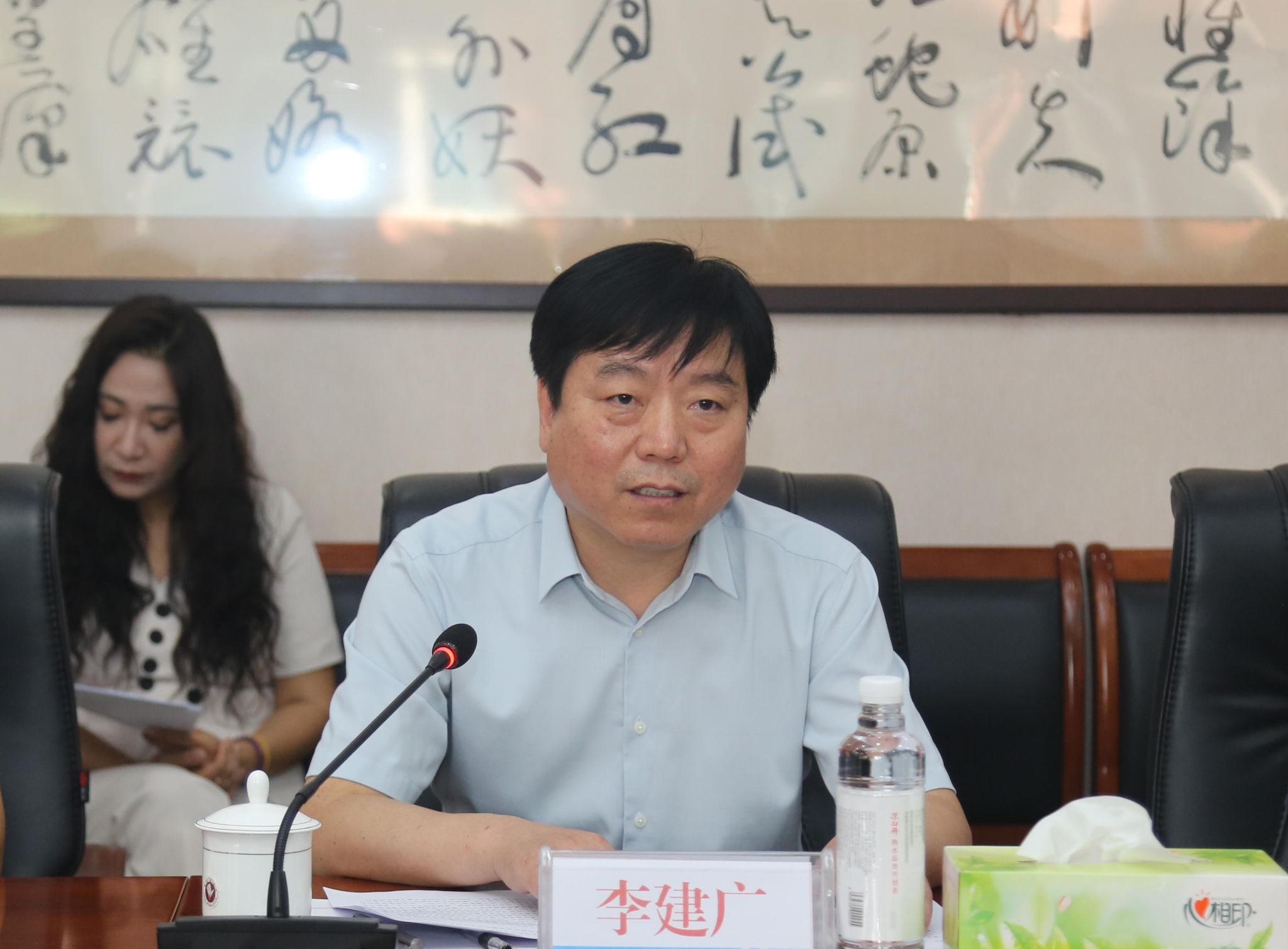 在随后召开的座谈会上,李建广对调研组的到来表示欢迎,介绍了我校基本情况及协助教育部驻村帮扶工作,并就我校在校企协同育人、技术研发与服务、临床研究创新、研发平台建设等方面取得的成绩、当前存在的问题及下步工作考虑作了汇报。