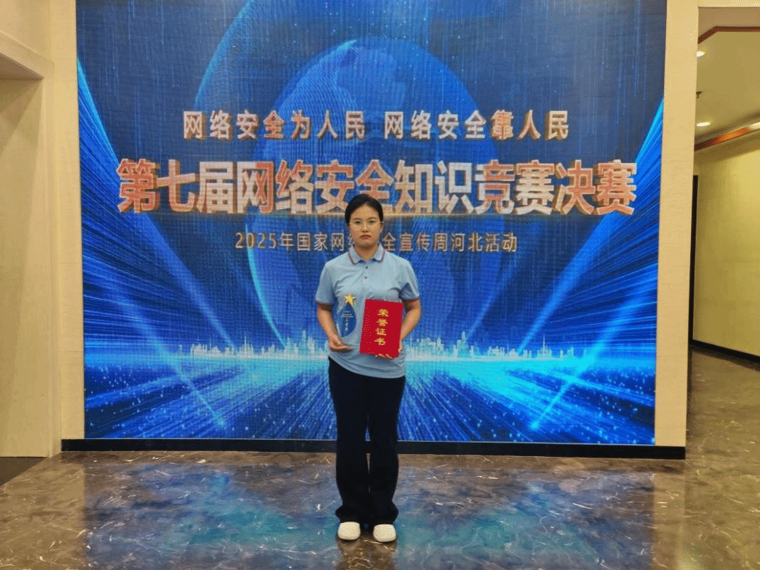 近日,由中共河北省委网信办主办的河北省第七届网络安全知识竞赛决赛在河北省广播电视台圆满落幕,我校2023级检验学徒制班陈梦茹作为邢台市代表队成员在决赛中发挥出色,通过“轮答烽火台”“接力争锋”“超级加倍”“勇攀高峰” 4个环节的激烈角逐,最终荣获三等奖,2024级药学专科3班郑妹娇、2024级护理系护理1班翟舒涵在预赛中成绩优异,展现了我校学生扎实的网络安全知识功底和奋发向上、勇于拼搏的精神风貌。