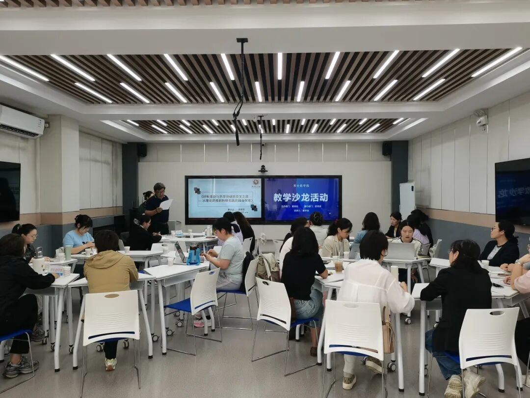 活动中,药学系教师黄宇含聚焦临床肿瘤靶向治疗科研方向,从材料选择、实验设计、成果基础和肿瘤治疗等方面进行分享,详细阐述了教学和科研相互贯通的重要性,主要有两方面做法:在教学内容设计上,将前沿知识融入课堂,推动科研反哺教学,以创新思维提升教学效果;在教师能力提升上,建设科研带动教学创新项目,积极探索新的教学模式和方法,不断提升授课质量和教学效果。与会教师热烈讨论,一致认为本次活动主题鲜明、内容丰富,为教学与科研的融合提供了新思路。