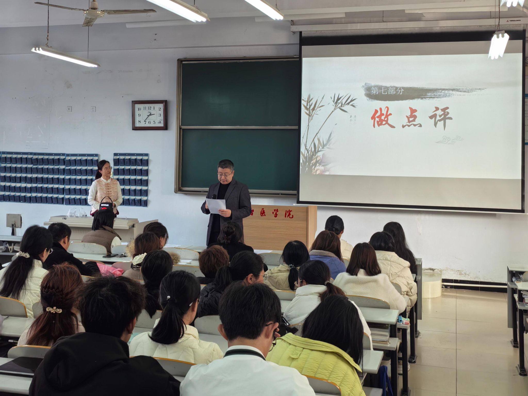 在做点评环节,临床医学系副主任、教工支部书记白志峰表示,本次活动是对习近平文化思想的生动实践,希望大家传承榜样精神,爱岗敬业、甘于奉献,争做医术精湛、医德高尚的高素质医疗卫生人才。