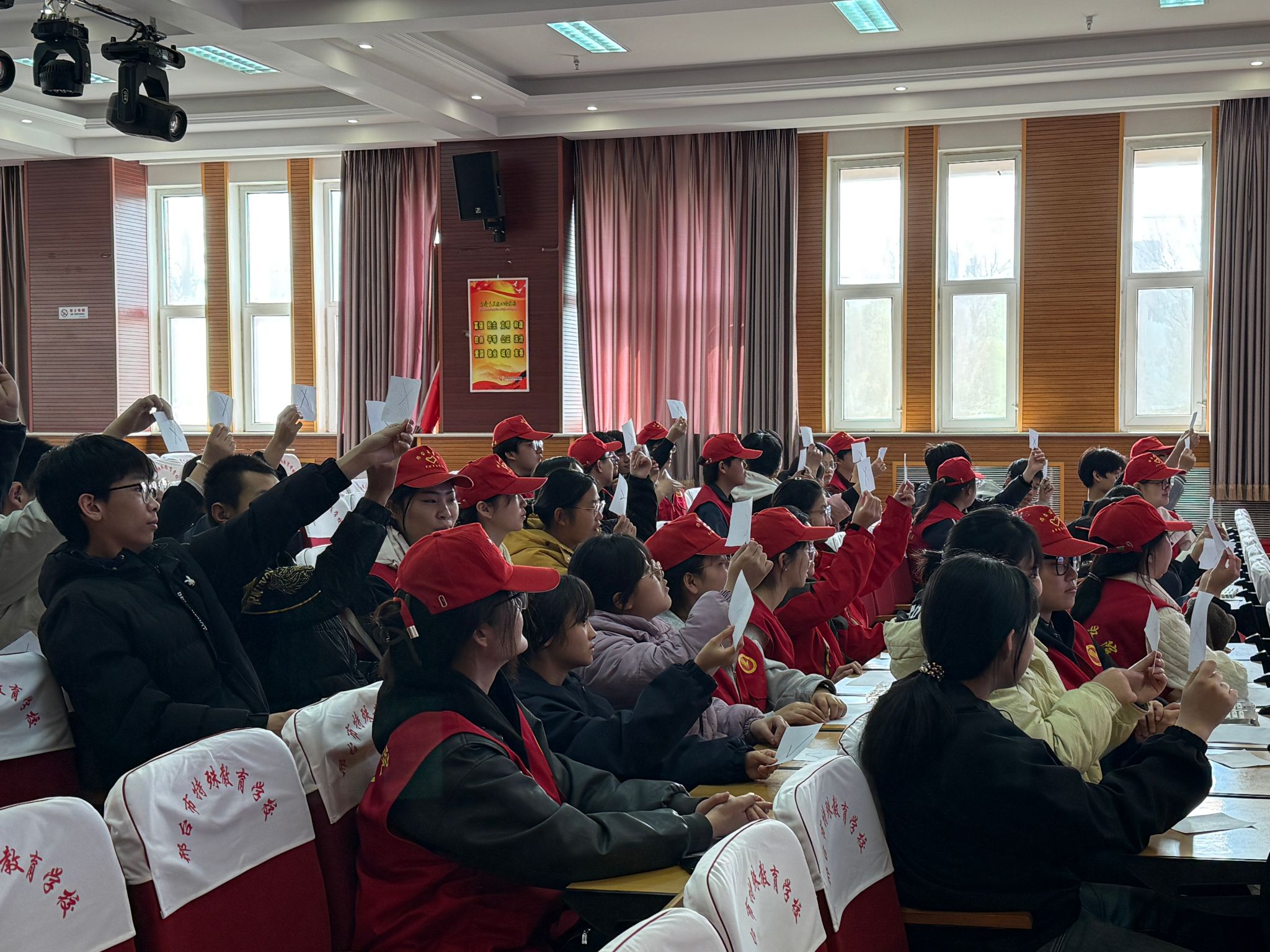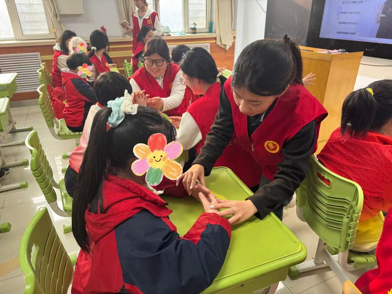 大学生“小橘灯”助残协会走进邢台市特殊教育学校,开展“橘灯伴你行 科普暖童心”志愿服务活动。志愿者化身“健康小老师”,以“春季健康小卫士”为主题,借助图文并茂的PPT,用童趣语言细致讲解春季流感的传播途径与预防方法,手把手教会孩子如何正确戴口罩。