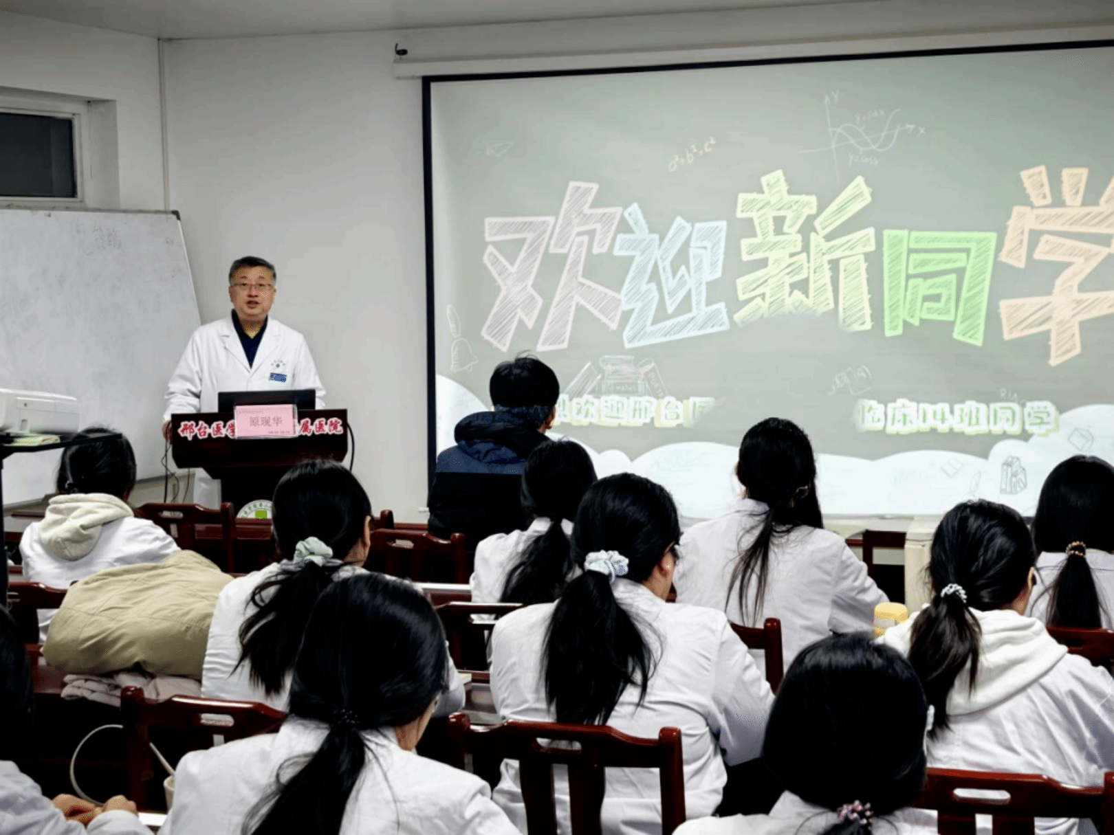 在学校附属医院(邢台市中心医院)见面会上,科教科冯丽老师对同学们的到来表示热烈欢迎,讲解了见习期间的班级纪律、课程安排以及注意事项,引导同学们规范行为、有序参与见习。随后,党办室李丽霞老师从医院发展、文化理念、服务宗旨等方面介绍了医院整体情况,帮助同学们快速熟悉医院、了解医院文化,为后续见习奠定基础。
