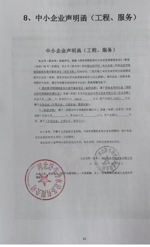 服务范围:邢台医学院校园直饮水提升服务