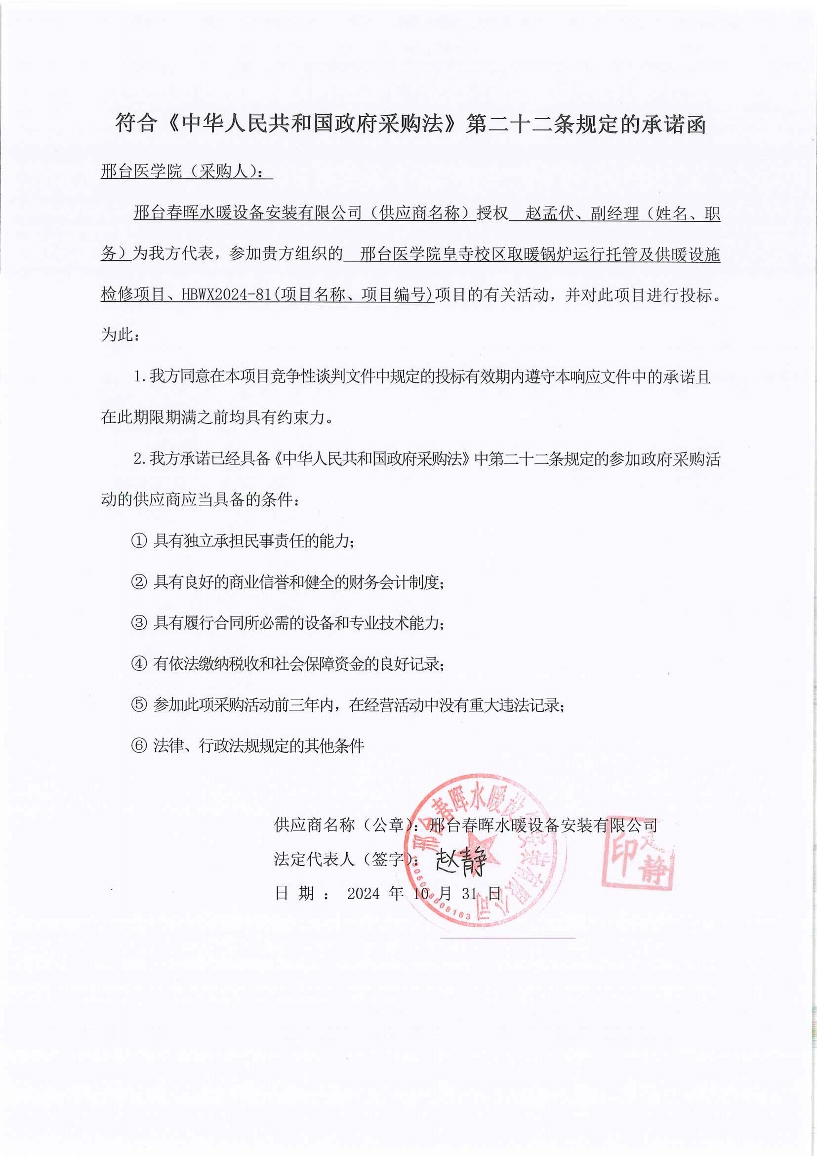供应商名称:河北春晖水暧设备安装有限公司