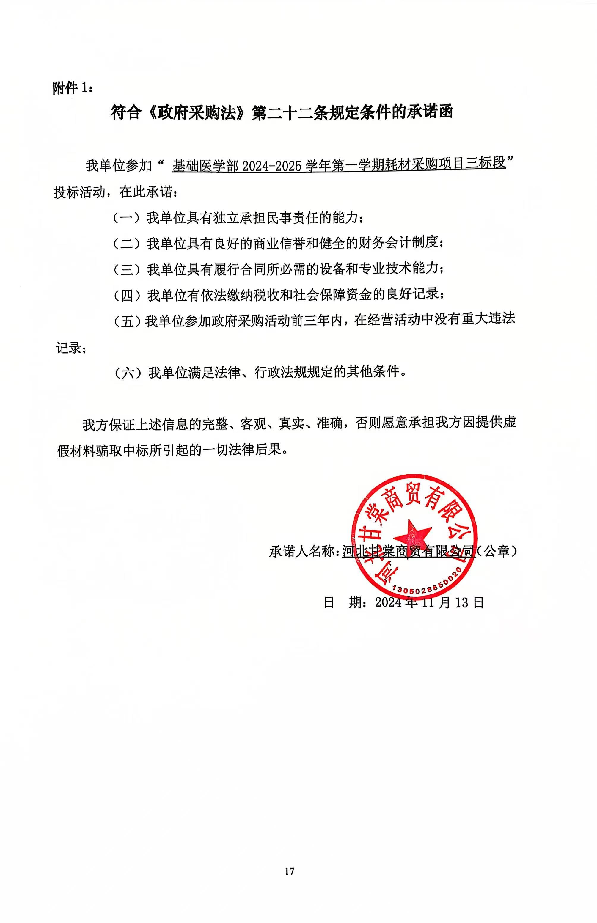 二、项目名称:基础医学部2024-2025学年第一学期耗材采购项目