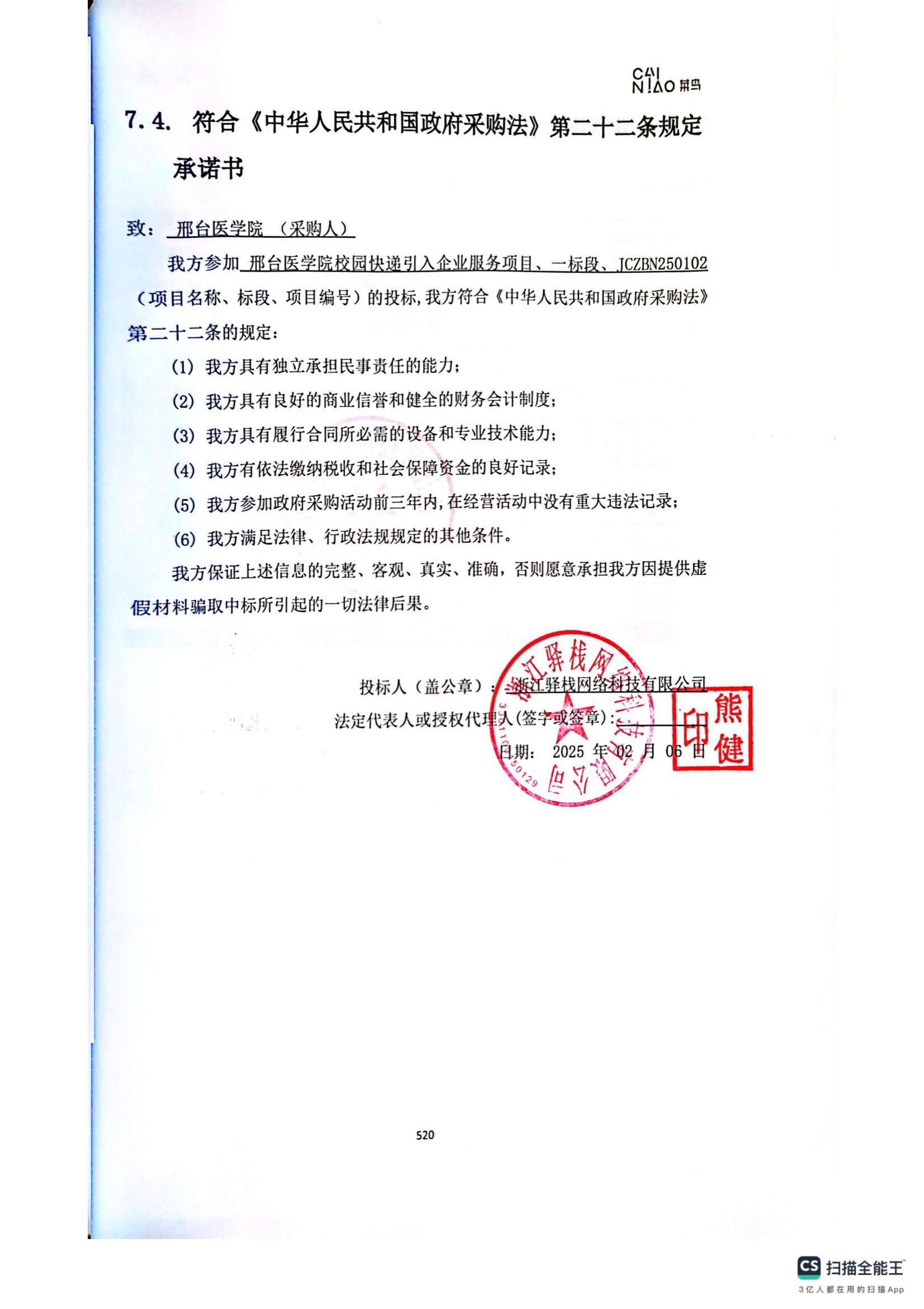二、项目名称:邢台医学院校园快递引入企业服务项目一标段