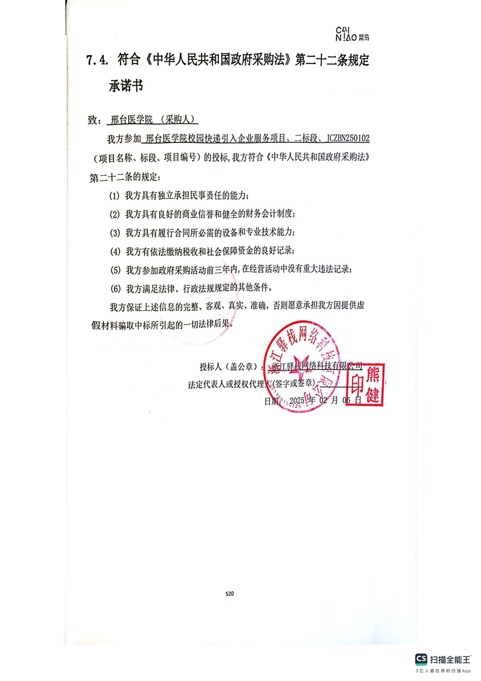 二、项目名称:邢台医学院校园快递引入企业服务项目二标段