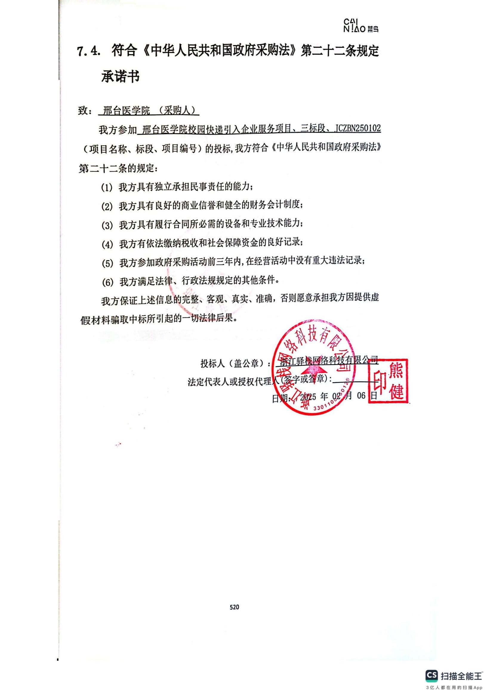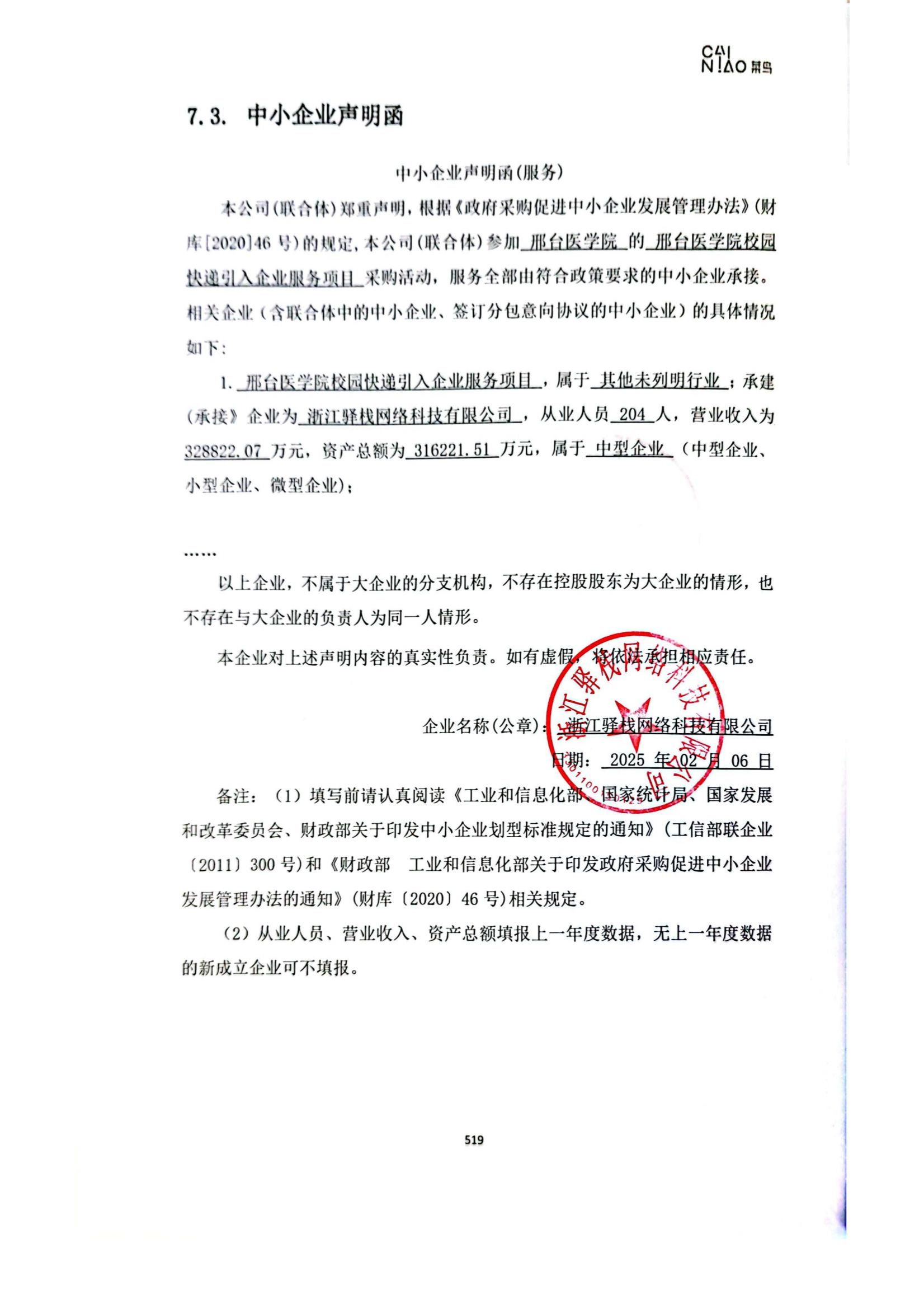 二、项目名称:邢台医学院校园快递引入企业服务项目三标段