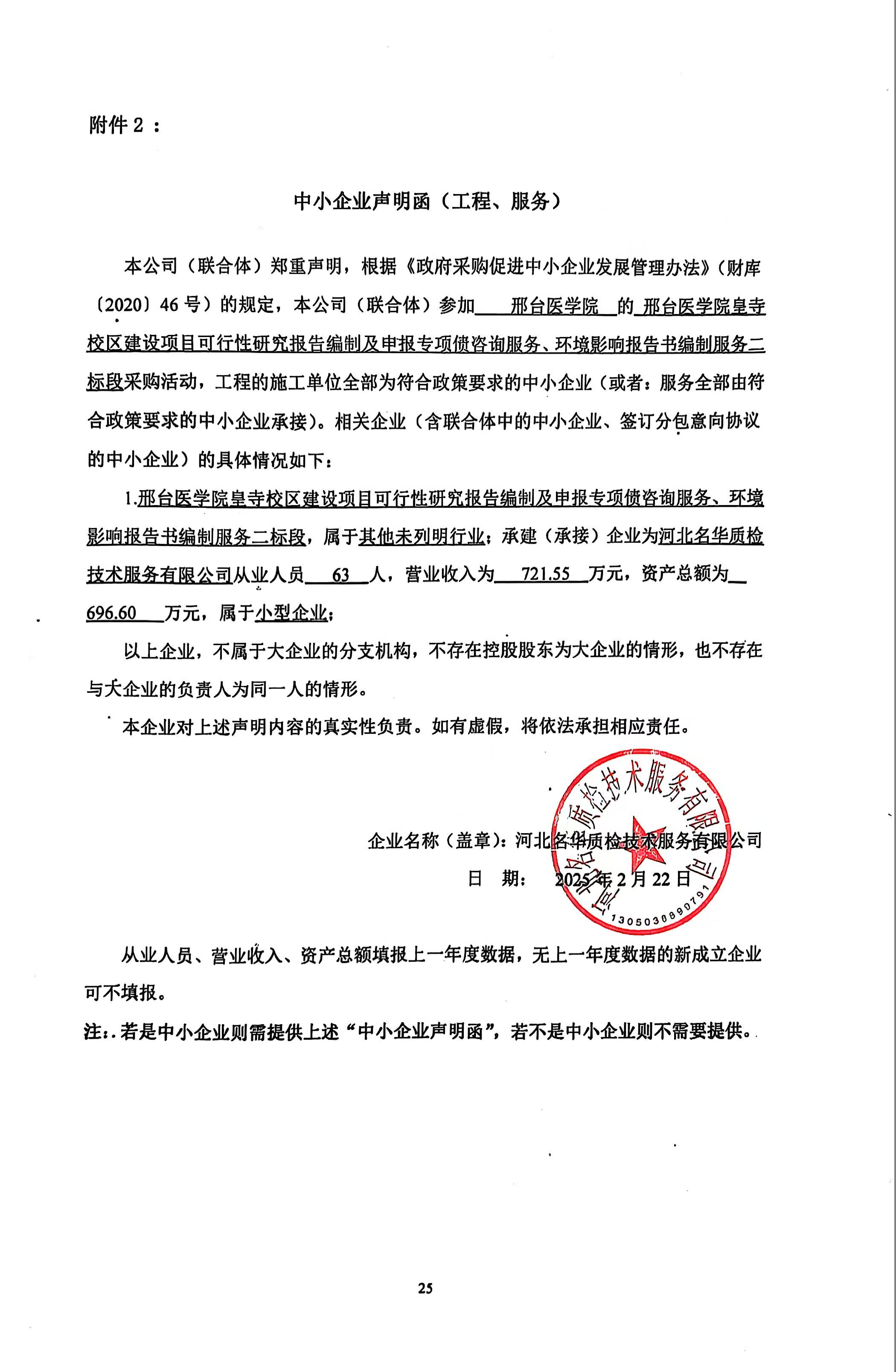 河北名华质检技术服务有限公司 | 河北省邢台市邢东新区龙岗东大街汽车城二期3号 | 911305000565047341 | 二标段 |