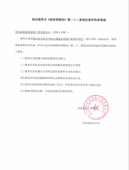 项目名称:邢台医学院皇寺校区增建水表阀门检查井项目
