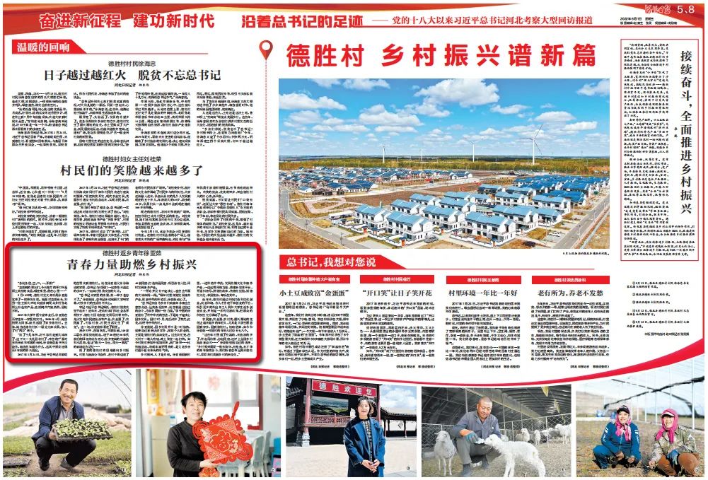 “这些年村里通了柏油路,来旅游的多了,种起马铃薯,办起民宿,还评上全国乡村旅游重点村……”徐亚茹坚信自己的选择,“乡村振兴需要一批有情怀、有抱负、有才华的青年接续奋斗,我们盼着总书记再来德胜村,看看我们美丽乡村的新变化。”