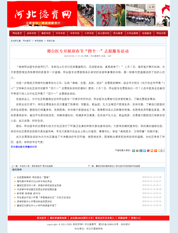 上一条:河北德育网报道“邢台医专元宵节开展“送健康 暖民心”党员志愿服务进社区活动”