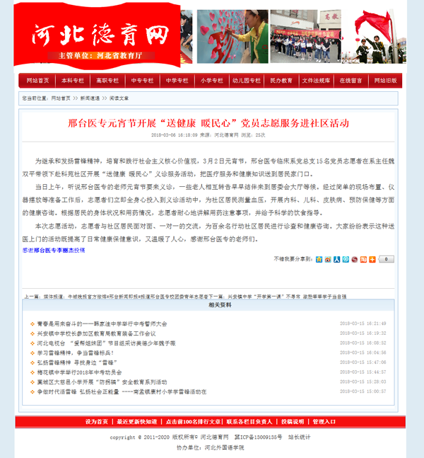 下一条:河北德育网报道“邢台医专开展迎春节“四个一”志愿服务活动”