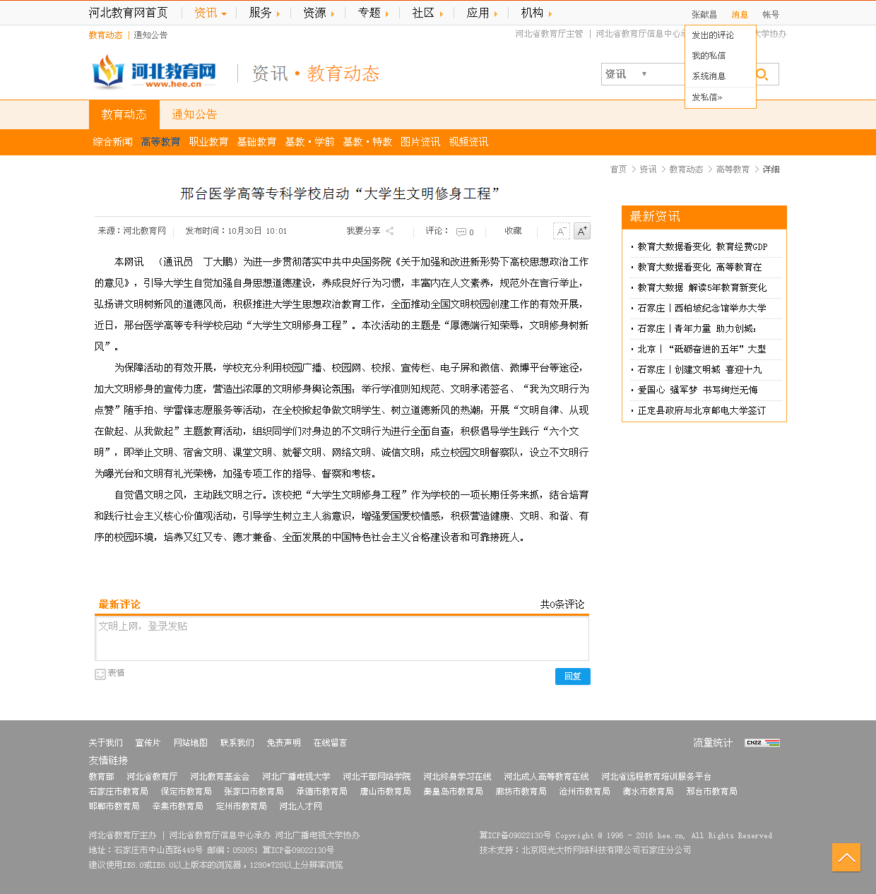下一条:河北教育网报道“邢台医学高等专科学校第十六届大学生文化艺术节开幕”