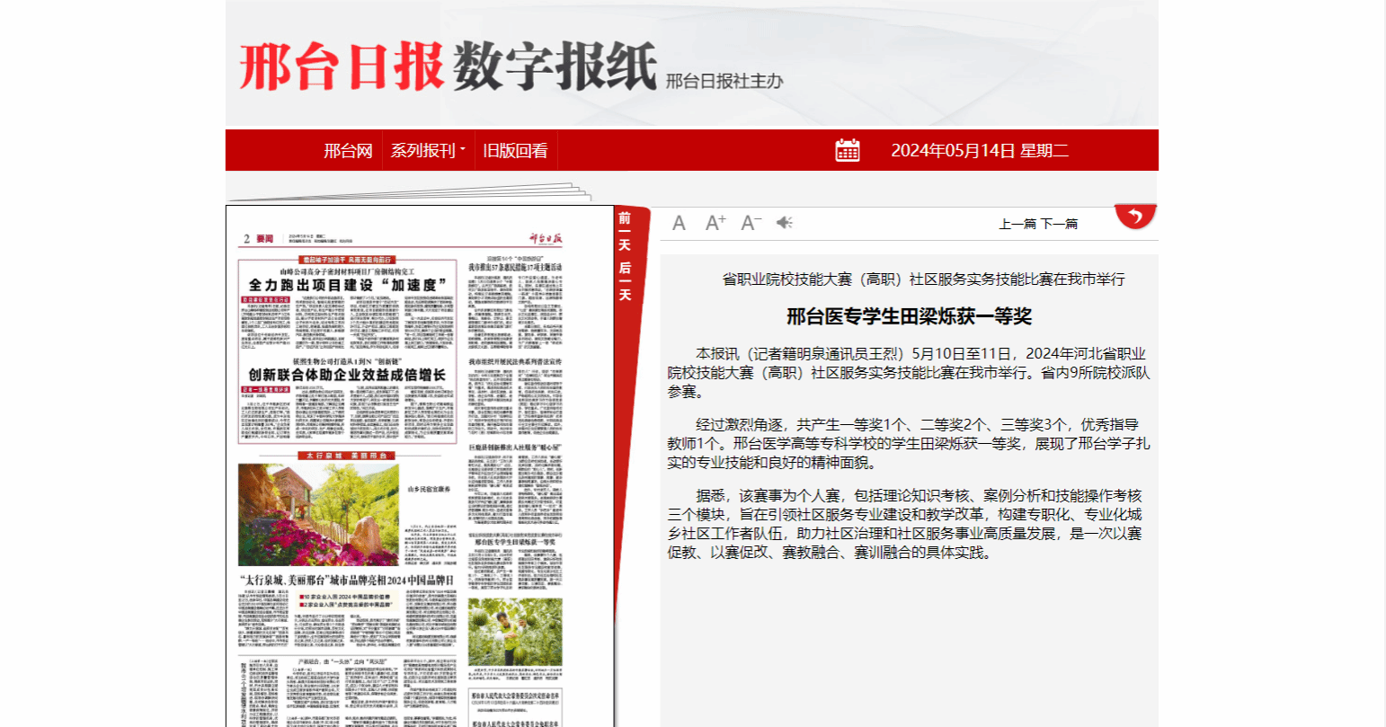 经过激烈角逐,共产生一等奖1个、二等奖2个、三等奖3个,优秀指导教师1个。邢台医学高等专科学校的学生田梁烁获一等奖,展现了邢台学子扎实的专业技能和良好的精神面貌。