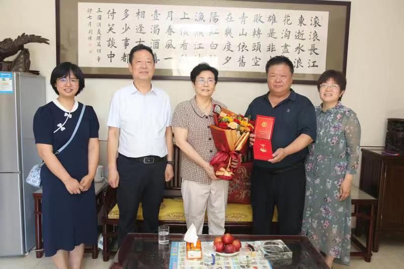 在建党102周年到来之际,6月30日,我校为8名“光荣在党50年”党员颁发纪念章。学校党委副书记、校长郑书深,党委副书记杜成旭,党委委员、组织宣传统战部部长张永格参加活动。6月30日上午,学校党委副书记、校长郑书深,党委副书记杜成旭,党委委员、组织宣传统战部部长张永格,人事处副处长、老干部党支部书记兴业等一行人来到原党委书记陈联群家里,郑书深校长、杜成旭副书记向陈书记送上“光荣在党50年”纪念章和鲜花,并致以亲切的问候和崇高的敬意,...