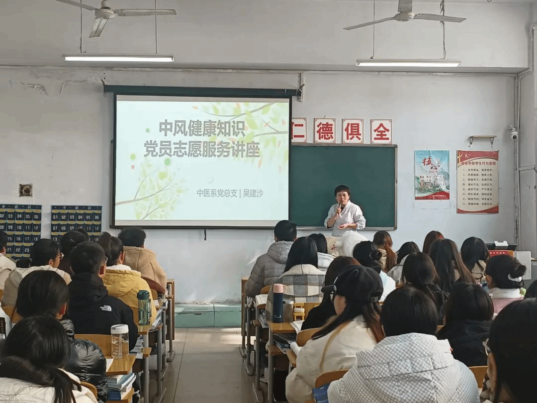 冬季天气寒冷,是中风的高发季节,为使同学们更深入了解中风的相关知识,增强预防脑卒中的自我保护意识,11月14日,中医系中内儿教研室吴建沙老师以《关爱健康,警惕中风》为题开展党员志愿服务讲座,100余名学生代表参加。吴老师从中风的危害、中风的好发人群、如何尽早识别中风的前兆、如何掌握急救处理方法等方面进行了耐心细致的讲解。吴老师叮嘱大家要健康饮食,科学运动,养成良好的生活习惯,加强自我健康管理,做到早预防、...
