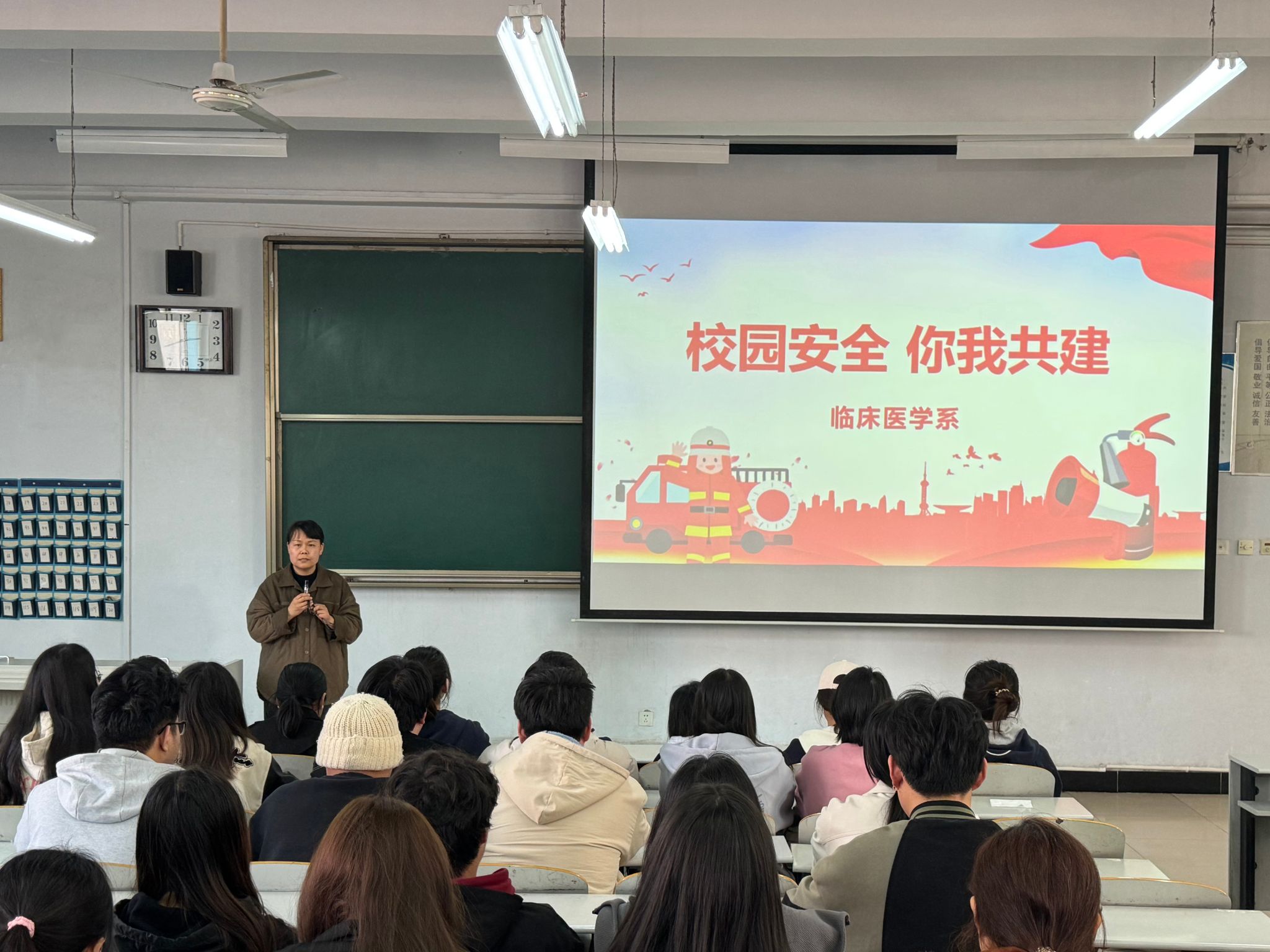 为进一步推进平安校园建设,筑牢校园安全防线,近日,临床医学系组织开展了以《校园安全 你我共建》为主题的党员志愿服务讲座,200名学生参加。主讲人王永芳老师围绕消防安全、财物保管、诈骗防范、交通安全等多个方面进行了深入讲解,结合身边发生的真实案例,重点对学生公寓安全多发问题进行了深刻剖析,引导广大学生进一步认识到违规使用大功率电器等行为的严重后果。同学们认真聆听、用心学习,积极互动交流,讲座取得了良好效果。...